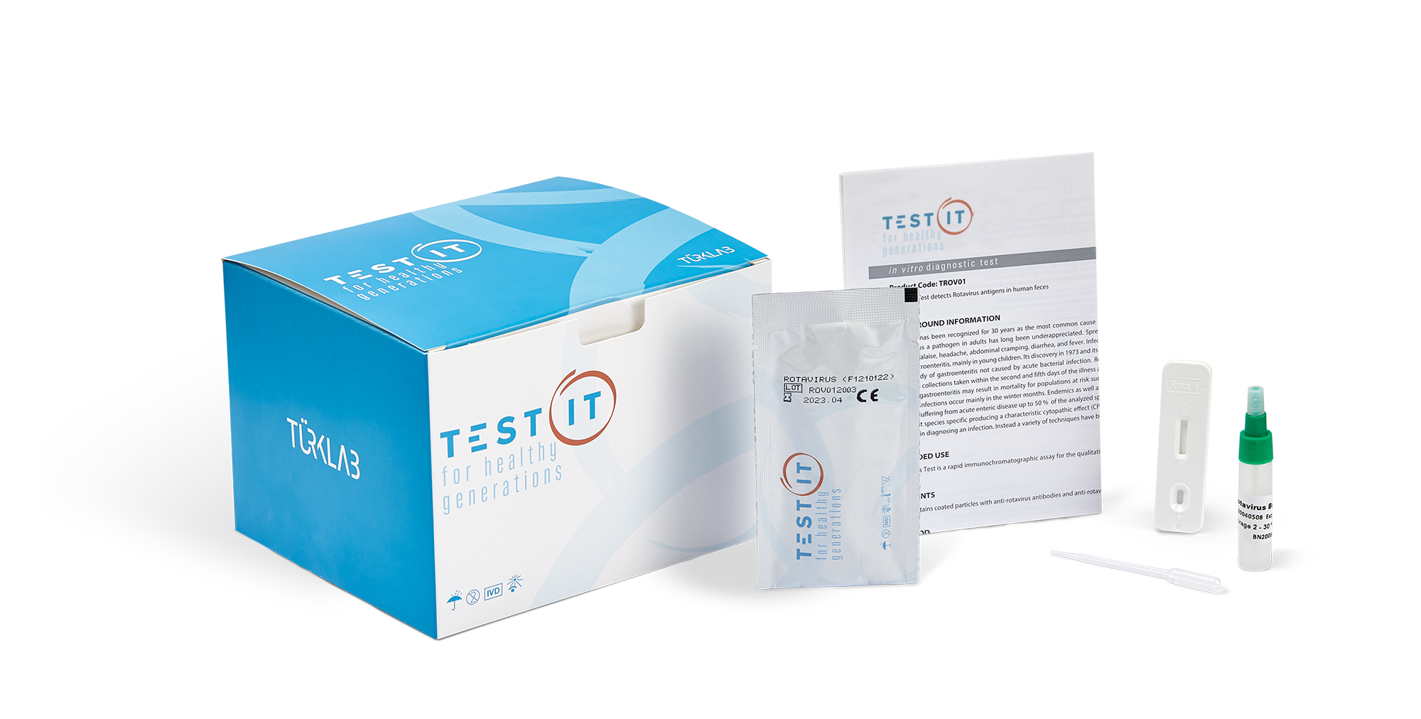 TEST IT Rotavirus Adenovirus Test is a rapid, immunochromatographic assay for the qualitative detection of Rotavirus and Adenovirus antigen in human feces samples. • Clean and reliable use. • Ease of use with the sample collection tube with prefilled diluent.