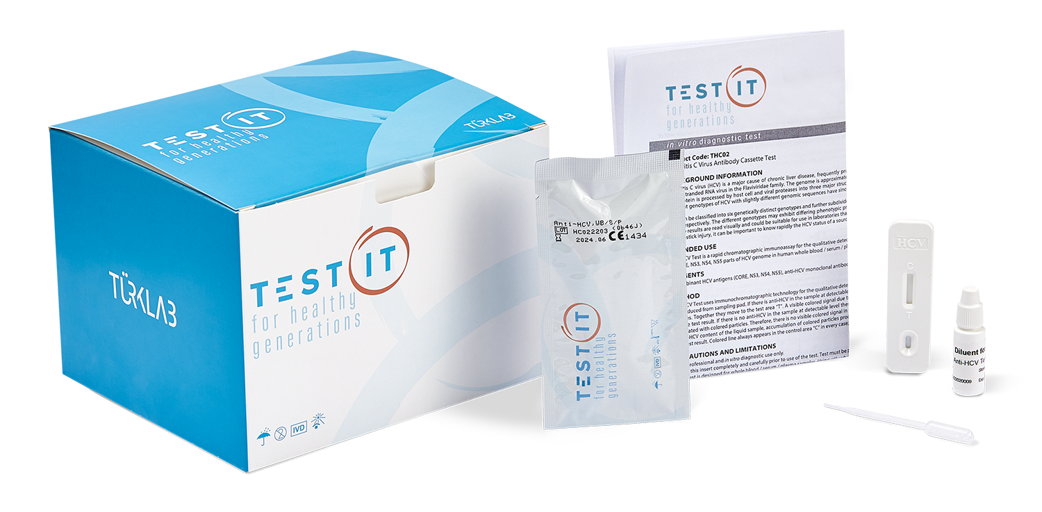 Test-IT Anti-HCV Test is a rapid, immunochromatographic assay for the qualitative detection of antibodies generated against proteins that are encoded by conserved sequences of HCV genome in human serum, plasma, and whole blood samples. • Detects antibodies generated against the proteins encod- ed by all HCV genotypes’; most conserved parts of Core, NS3, NS4, and NS5 regions in the HCV genome.