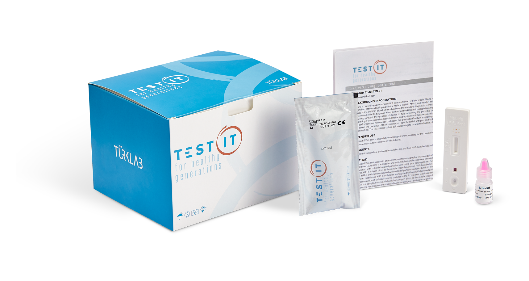 Test IT Malaria Test is a rapid chromatographic immunoassay for the qualitative detection of Malaria as well as distinguishing the causing parasite species by detecting pan-Plasmoduim aldolase antigen and P.falciparum spesific HRP-II antigen in whole blood. • Verified no cross reactivity with with HAMA, RF, HBsAG, HBsAb, HBeAg, HBeAb, HBcAb, Syphilis, HIV, HCV, H.pylori, MONO, CMV, Rubella and TOXO positive controls. • Wide range of samples can be used, plasma, serum, capillary blood or venous blood. • Only a small volume of sample (5 ul) is needed.